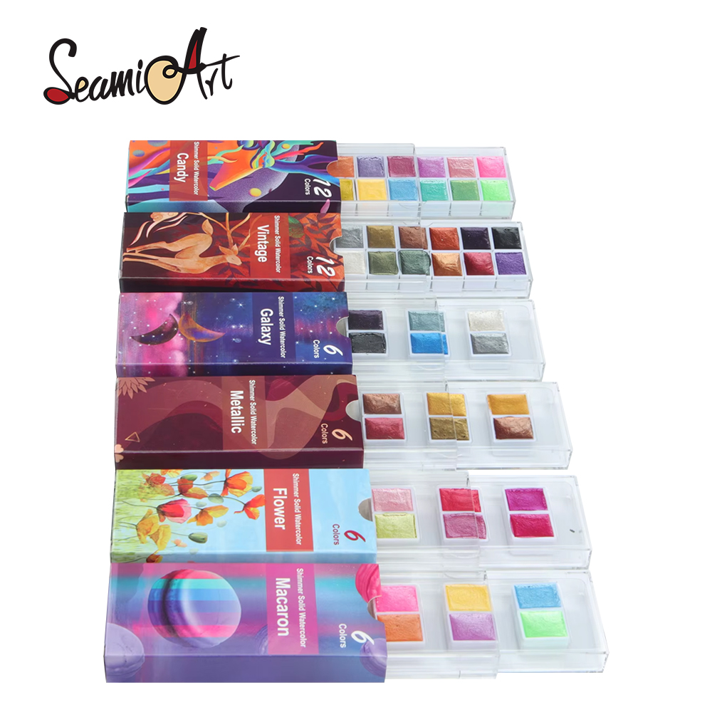 new arrival 6/12 color metallic/Candy watercolour solid watercolor paint half pan travel set